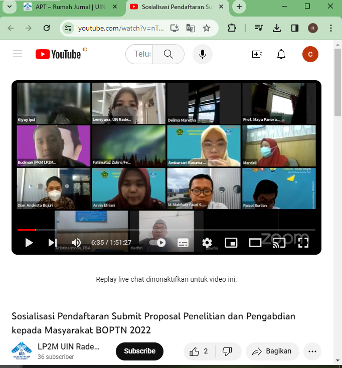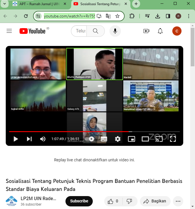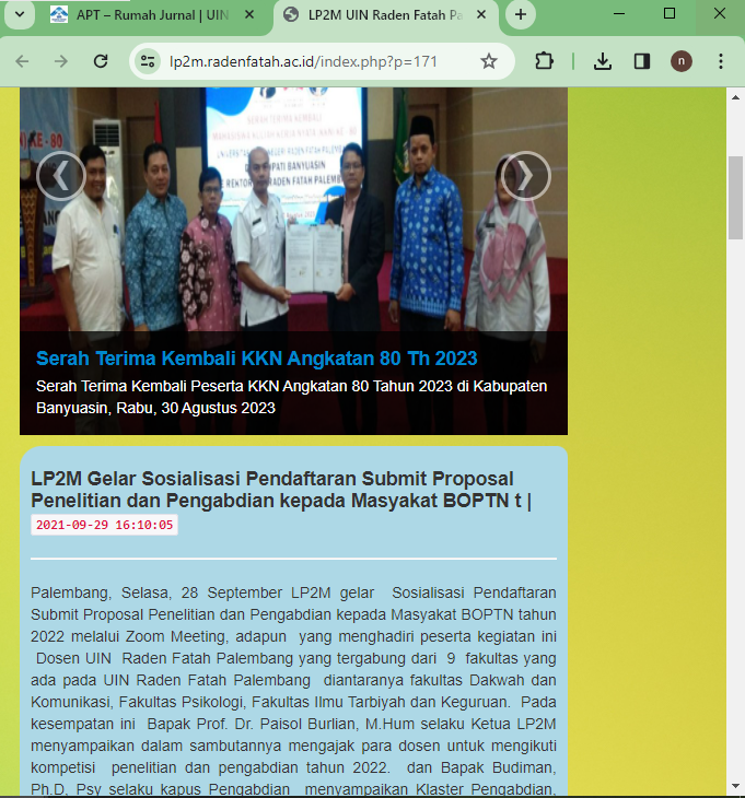 Penanggung Jawab Tim Penyusun APT UIN Raden Fatah Palembang Tahun 2022