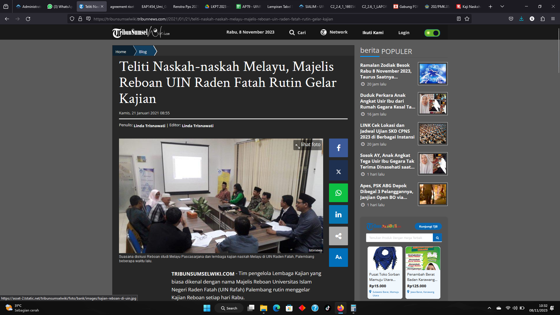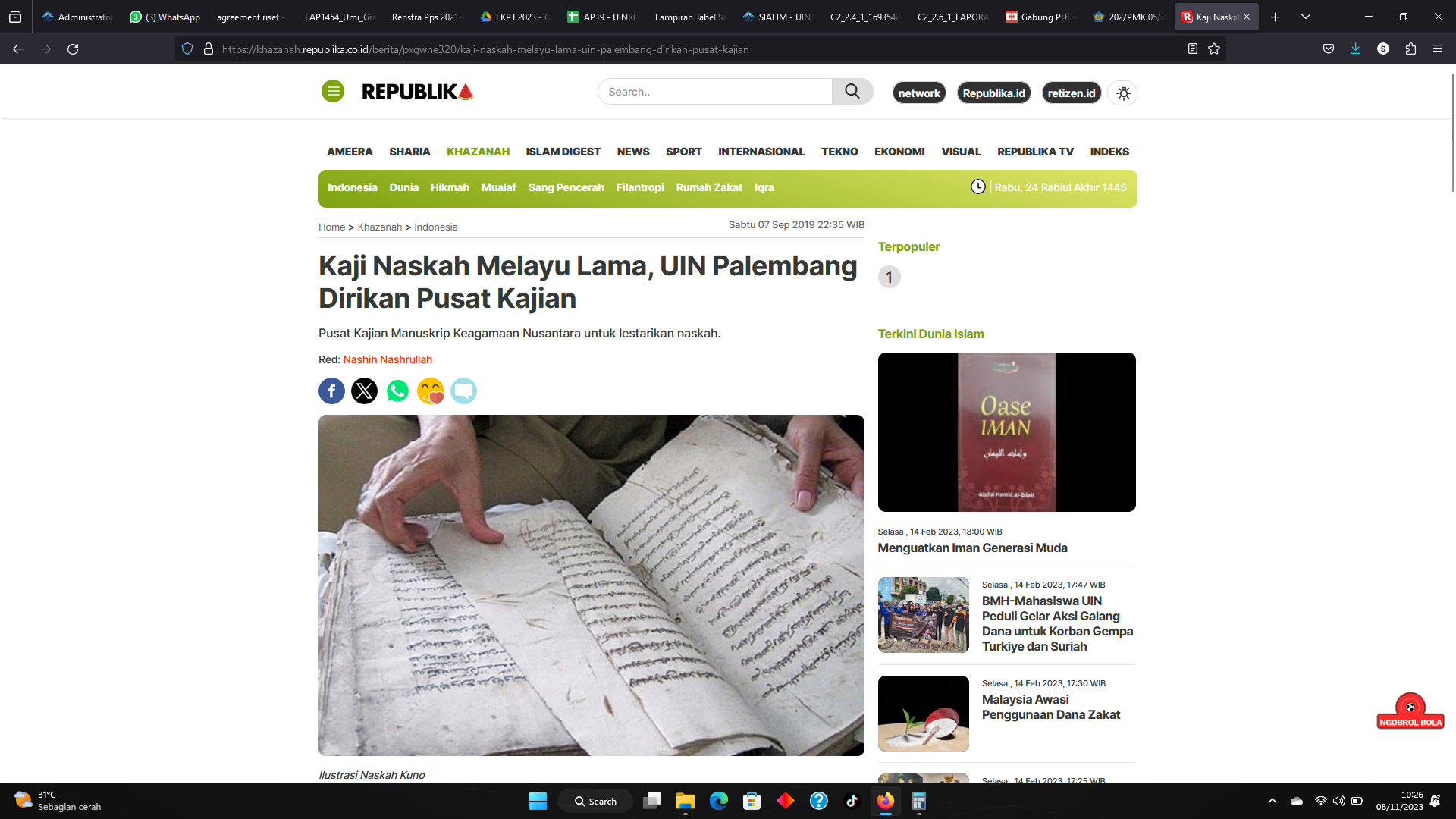 Kajian Naskah-naskah melayu dari Majelis Reboan UIN Raden Fatah 2023