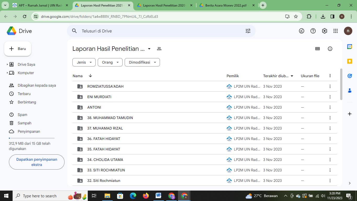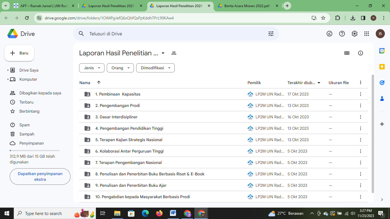 Laporan Kegiatan Tim Pembuatan RIP, Renstra dan Renov UIN Raden Fatah Palembang